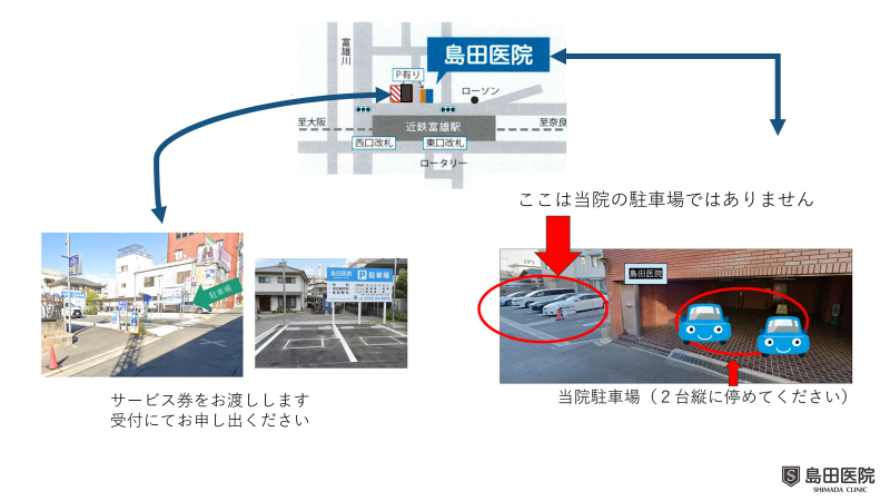 電話(0742-44-0004)予約又はWEB予約で確定いただいてからご来院ください。