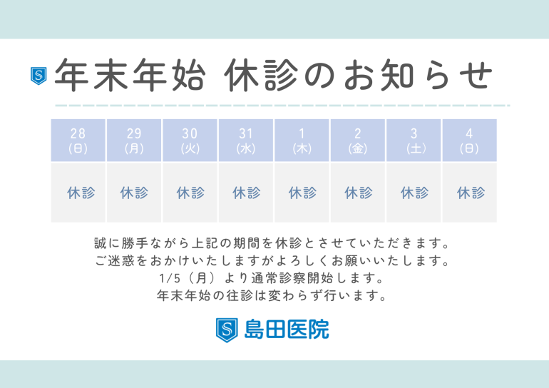 院長学会出席のため、下記の日程は臨時休診とさせていただきます。ご迷惑をおかけいたしますが、何卒よろしくお願い申し上げます。